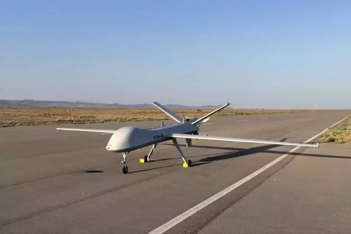 伊朗展出一款具備24小時滯空能力的新款無人機,外型酷似美國「死神」無人機。