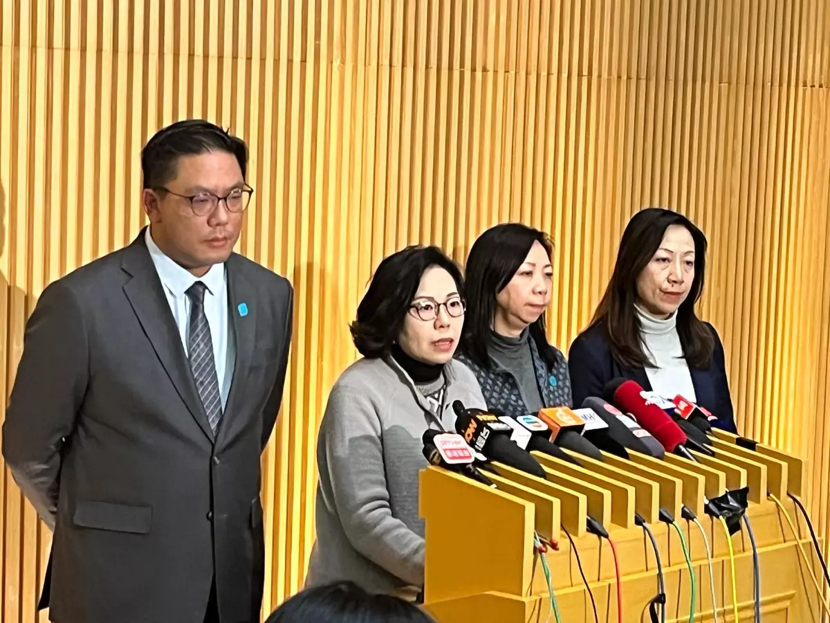 民政及青年事務局局長麥美娟、民青局常任秘書長林雪麗、民青局副局長梁宏正及民政事務總署署長杜潔麗,就大埔宏福苑管理事宜會見傳媒。巴士的報記者攝