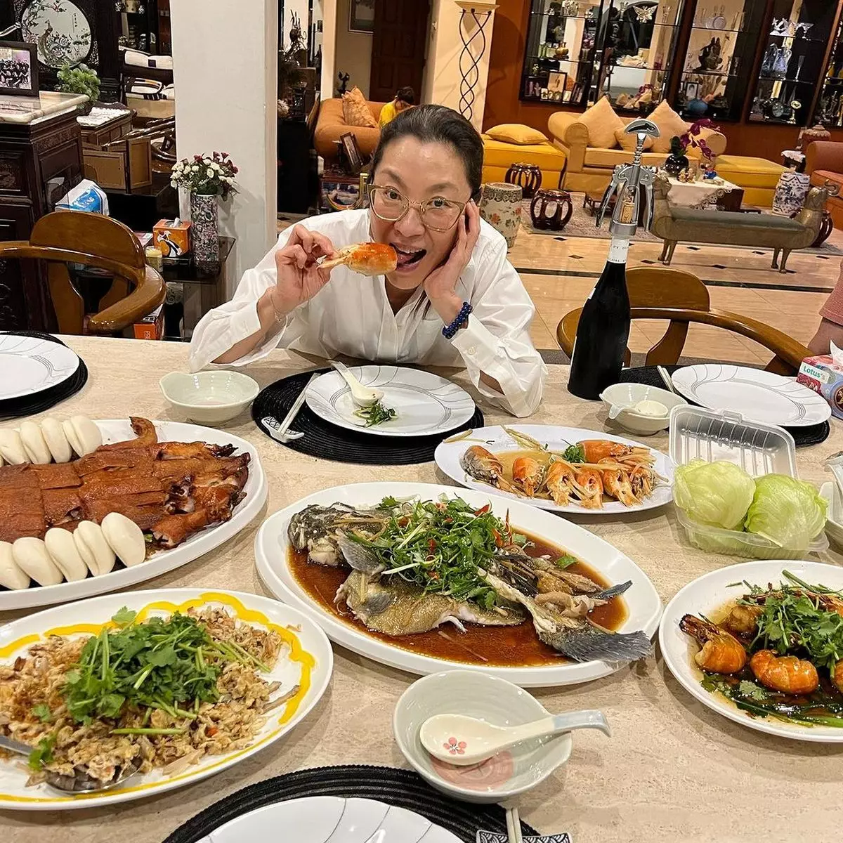 楊紫瓊在超豪大宅內開大餐,菜式相當豐富。