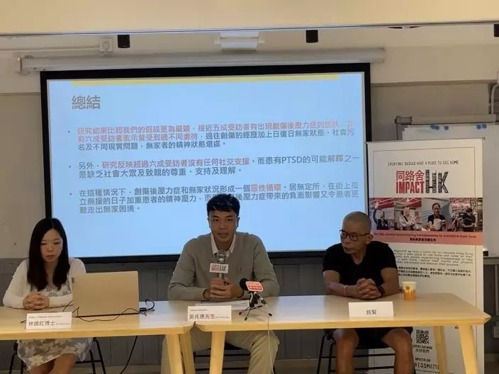研究員調查無家者的心理健康狀況及過去經歷,發現44.9%的受訪者符合創傷後遺症的閾值,即他們已出現創傷後遺症的症狀,相當貼近確診的臨床要求。