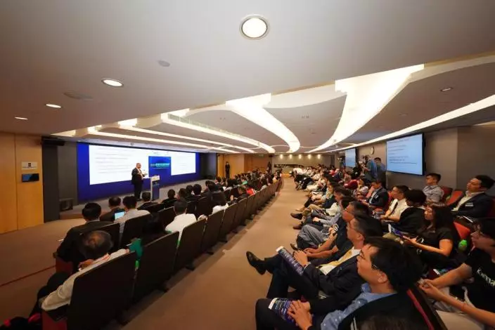 香港城市大學校長梅彥昌教授在主旨演講闡述大學作為科研基地在產業轉化中的作用及角色。
