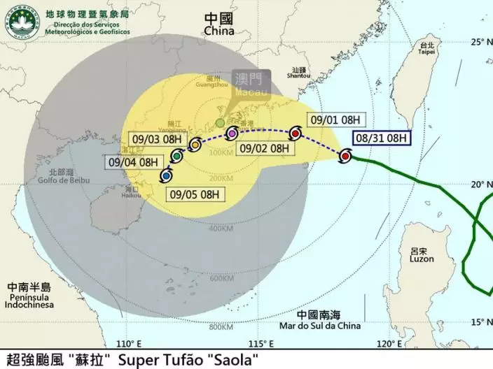 澳門氣象局又表示,未來數天正值天文大潮,叠加風暴潮影響,按現時預測路徑,後日日間低窪地區會有水浸,若超強颱風蘇拉路徑更接近珠江口,水浸情況將會非常顯著,不排除發出更高級別風暴潮警告。