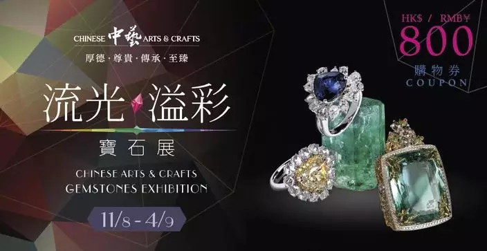 中藝趁今次機會,舉辦「流光溢彩寶石展」,展出多種獨特的彩色寶石首飾。大家也可以觀賞具特別形態的晶體原石,包括古時稱為「鴉青」的藍寶石,還有紅寶石、變色藍寶石、橄欖石、葡萄石等等天然礦物標本,超過20種,大家也能感受到珍貴寶石的璀璨明豔,大飽眼福。