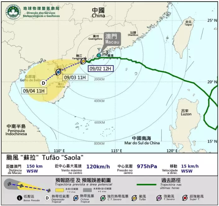 澳門今早6時改發8號東南風球,氣象局預料,上午維持8號風球,下午3時至6時考慮改發3號風球。