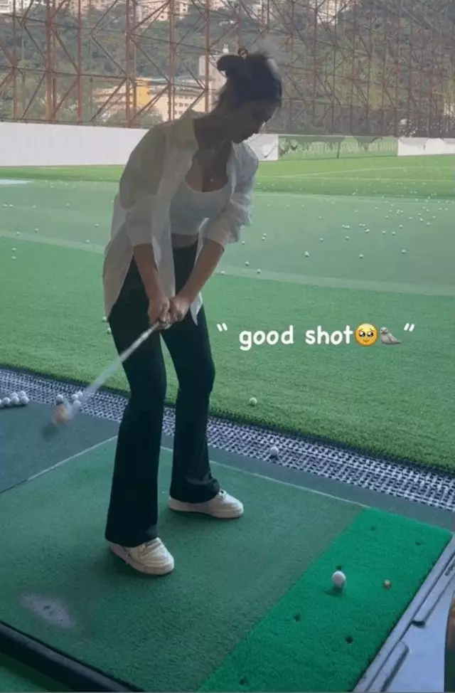 在分享的限時動態中,郭珮文身穿白色背心搭配薄襯衫外套,雖然髮型和造型簡單,但網民都好難將注意力專注在郭珮文的高爾夫球技好唔好,因為郭珮文的小背身十分貼身,將她姣好身段完全凸顯,尤其是上圍深不見底,似乎件小背心就快裝唔曬,十分吸睛!