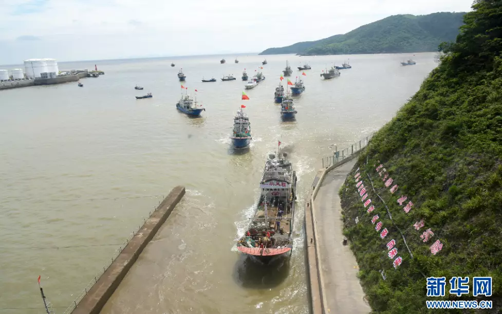 漁船駛入浙江舟山沈家門漁港避風。新華網圖片
