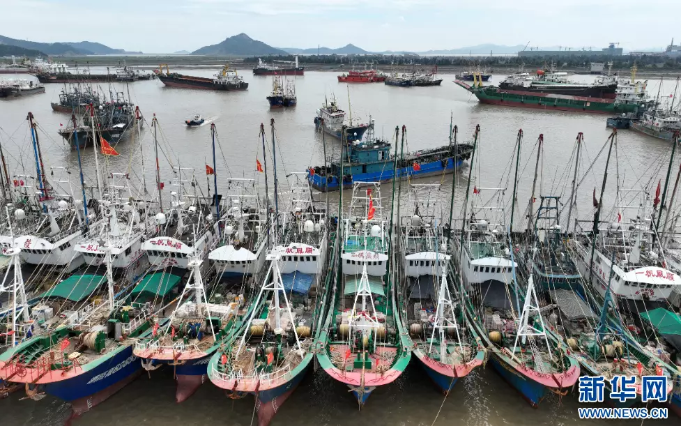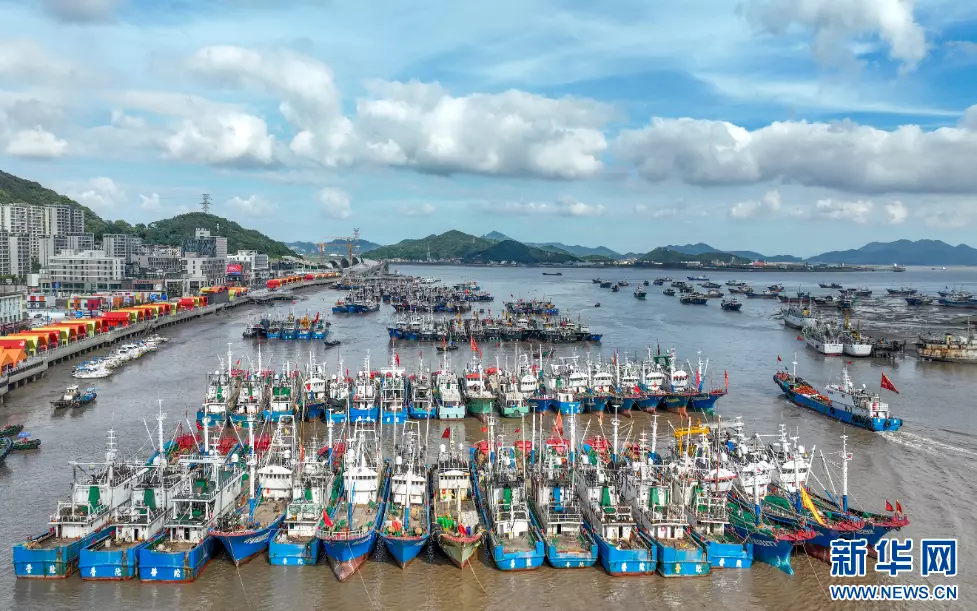 8月31日,在浙江舟山沈家門漁港的回港避風的各類船舶。新華網圖片