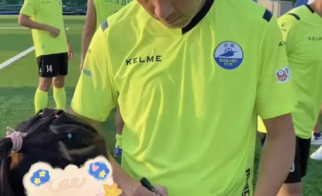 最近香港明星足球隊去到上海踢波,成員林文龍被網民捕獲。