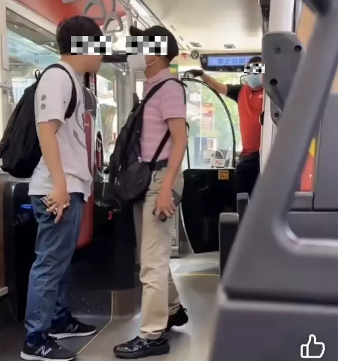 有網民於Facebook群組「好fashion呀你」以「點解而家啲人搭車都可以咁燥?」為題上戴一段影片,影片可見,一港男與中年大叔於九巴車廂內發生激烈爭執,大叔投訴港男打尖,港男則指責大叔動手推人「你推我啊!」,大叔則回應說「我無推你啊。」港男又提高聲線指「有閉路電視,你而家推我我報警!」大叔無懼回應「報啊!」。