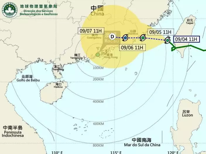 澳門在凌晨4時發出1號風球。(澳門氣象局)