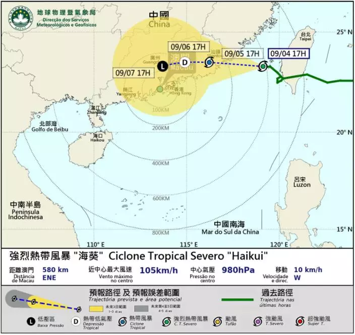 由於不能排除「海葵」會採取較偏南路徑移動,因此本局會密切留意其動向,請巿民留意最新天氣資訊。