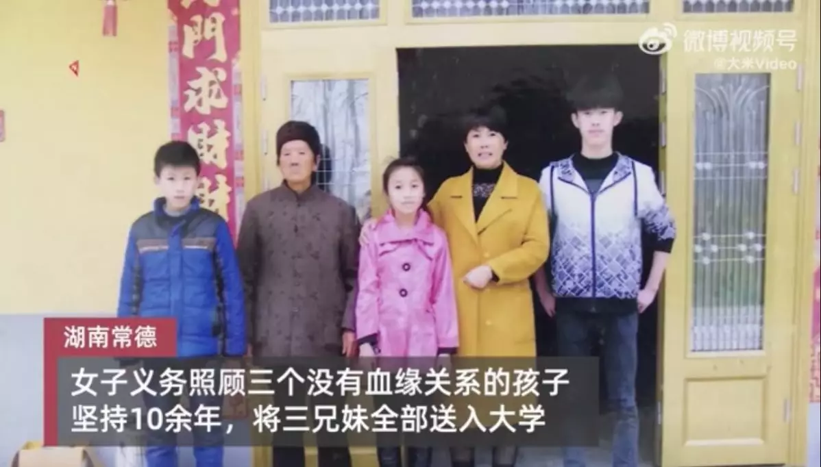 暖心女子悉心養育離世村民3個孩子十餘年並將其送上大學,引來網友讚其為再生父母。