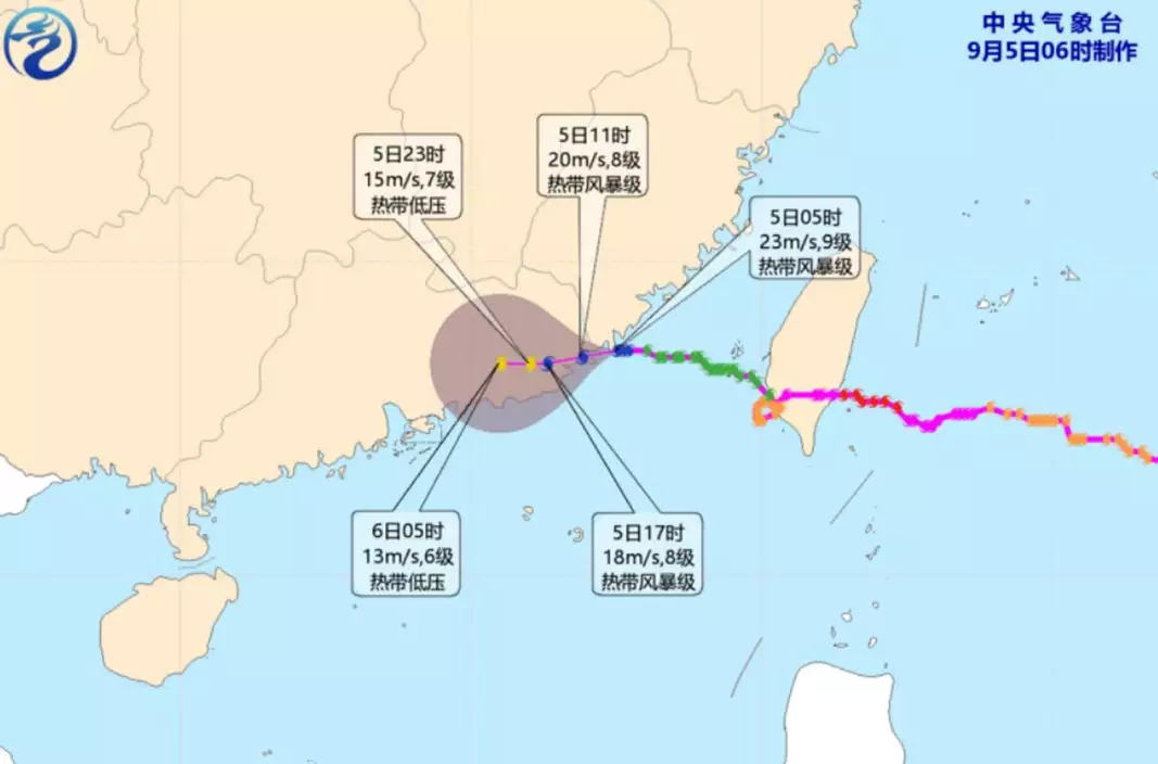 根據內地中央氣象台,海葵的中心於上午06時45分前後,在廣東省饒平縣沿岸再次登陸。