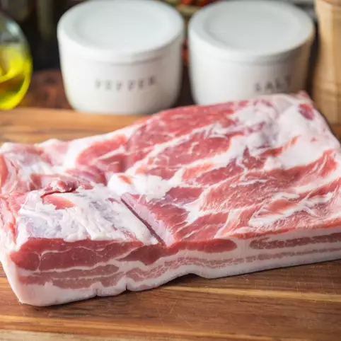 照片可見,豬扒帶骨及肉絲,邊緣帶血帶筋,而且肉色深淺不均勻,明顯是真豬肉。(「素食青年」FB圖片」
