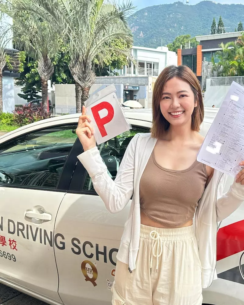 近日她就在社交平台公布喜訊,宣布考車牌「1 take 」通過