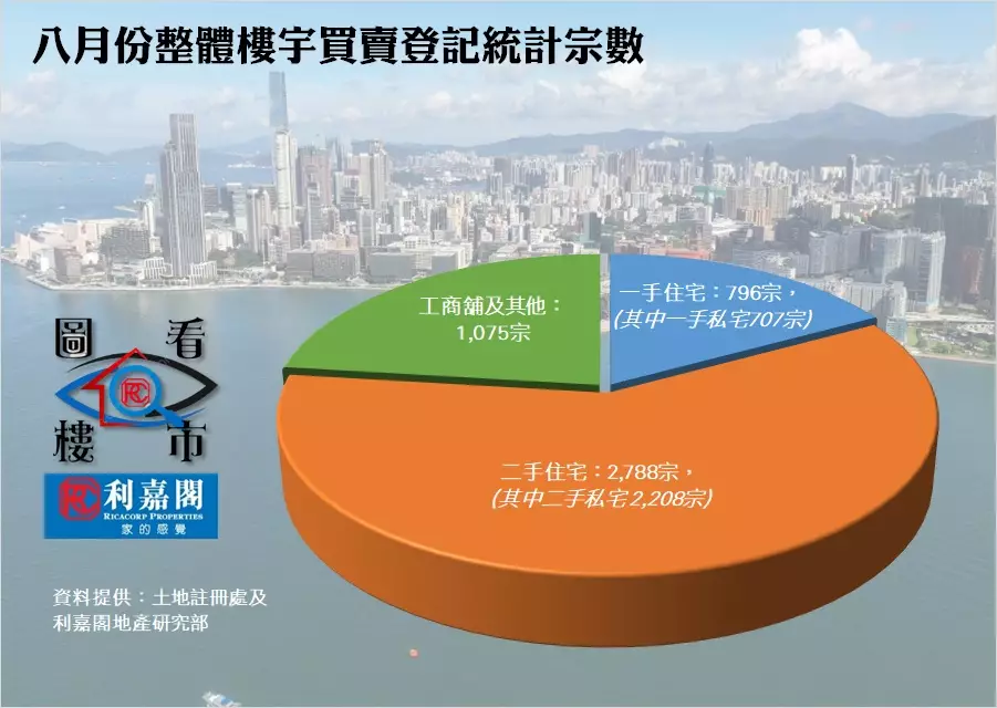 一二手住宅買賣近月持續偏軟,惟在業主接受現實減價後,登記量終在低位找到支持。根據土地註冊處最新數據,2023年八月份全港共錄4,659宗樓宇買賣登記(數字主要反映七月中旬至八月上旬的樓市實際狀況),較七月份的4,437宗回升5%,為連跌4個月後首見回穩,惟仍處於不足五千宗的低水平窄幅徘徊;而月內整體物業登記總值按月也升9%,錄得365.64億元,同樣終止四連跌。