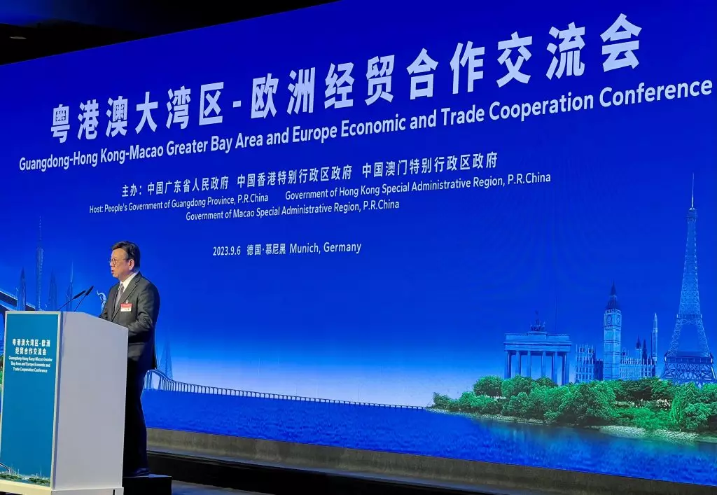 正在德國慕尼黑訪問的商務及經濟發展局局長丘應樺,在當時地間星期三出席「粵港澳大灣區—歐洲經貿合作交流會」。