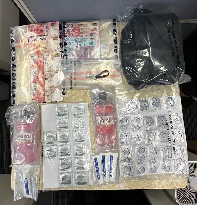 行動中共檢獲超過一萬元現金、避孕套及潤滑油潤滑劑等證物。
