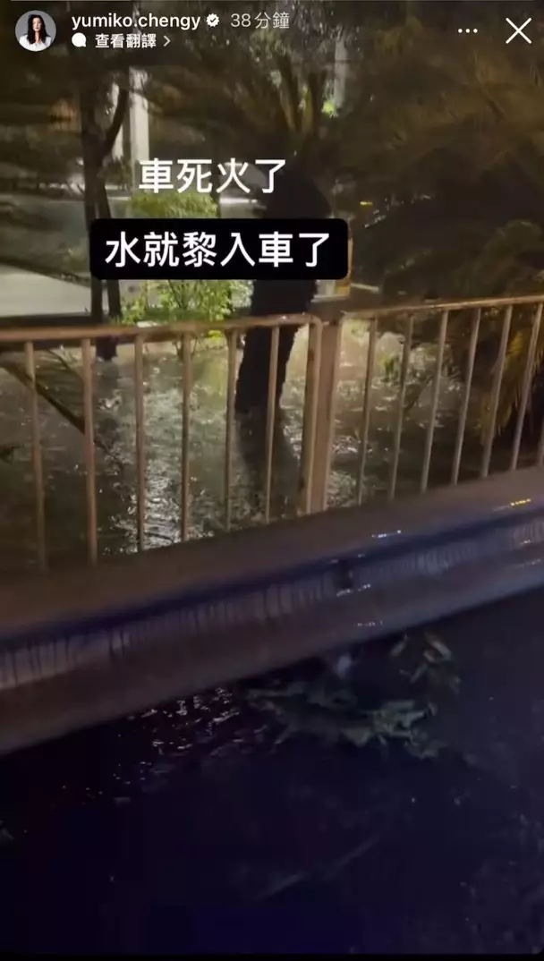 而鄭希怡(Yumiko)就未有咁好彩,晚上下大雨她在駕駛時,坐駕死火,水更湧入車廂,水位更一度高至兩隻鞋都完全泡在水中,但她反而就淡定得多。