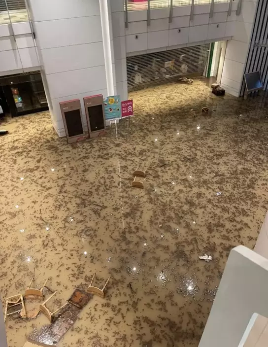 有住了幾十年的街坊說,商場水浸程度前所未見,估計地庫層商戶包括多間食肆的損失嚴重。有街坊形容,情況比颱風山竹吹襲時更嚴重。