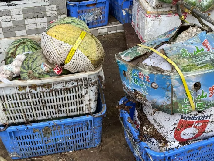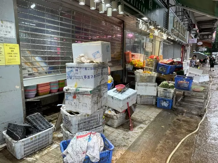 在龍翔道的街舖都受到影響,賣水果同凍肉的店鋪有貨物被浸。