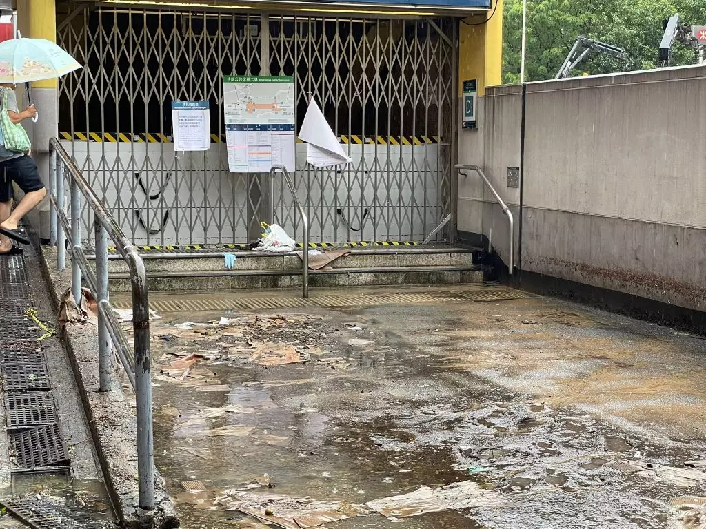 黃大仙中心北館外地鐵站幾乎沒頂(巴士的報記者攝)