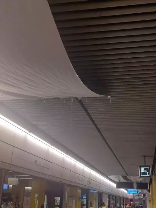 初步相信是與前晚暴雨水浸有關,之前的檢查中並沒有發現該位置滴水,港鐵人員正進行搶修。