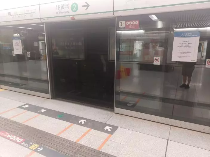 港鐵表示,初步檢查發現是1號月台,即往調景嶺方向隧道頂有輕微滴水,水滴在架空電纜絕緣體上,因此影響供電。