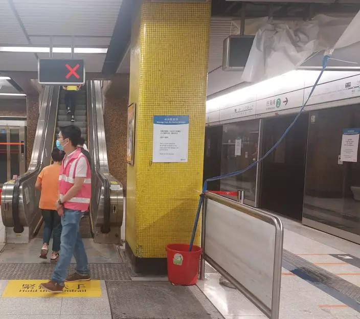 港鐵表示,黃大仙站重開後,上午9時40分,一列往調景嶺方向列車進入黃大仙站一號月台時,車長留意到隧道架空電纜位置有輕微火花。調查顯示,隧道頂之前檢查未有發現有滴水的位置出現滴水,架空電纜絕緣體接觸到水滴後出現輕微火花,初步相信事件與前晚暴雨有關。