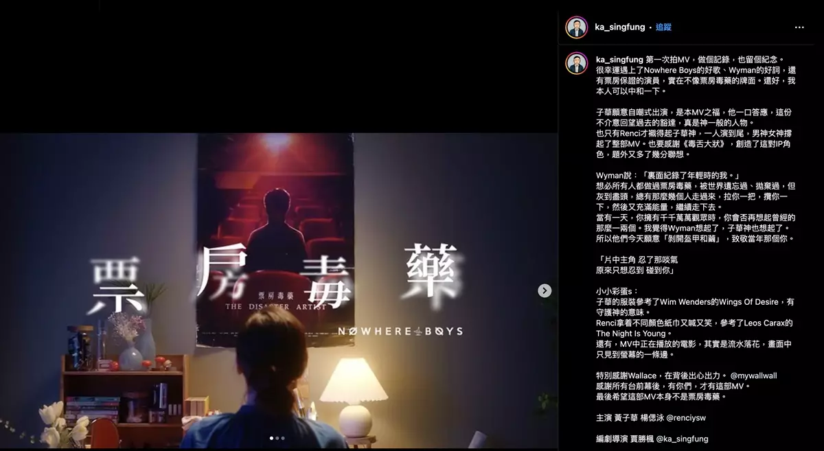Nowhere Boys新歌《票房毒藥》的邀請到《毒舌大狀》的男女主角黃子華和楊偲泳擔任男女主角,當中結他手Ken原來與子華還有一段師徒情緣!