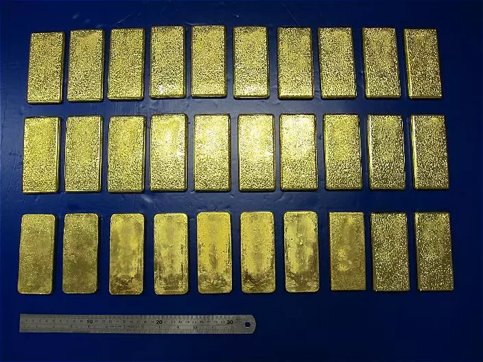 香港海關昨日在深圳灣偵破一宗涉嫌走私案件,檢獲30塊黃金,共重約30公斤,約值1,100萬元。
