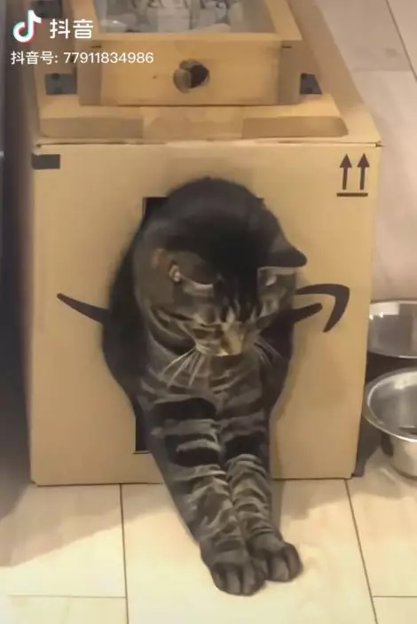 內地一名抖音用戶「@喵小呆」經常於抖音上分享可愛貓貓的影片,日前該帳號分享了虎斑貓貓鑽紙箱洞口的逗趣影片,讓一眾網友大為震撼!影片可見,一隻黑灰色的虎斑貓試圖從一個紙箱中走出,紙箱的一側事先被挖了一個細長的開口供貓貓進出,只見貓貓先踏出兩隻前腳,但似乎發現出入有些困難,於是重新調整位置再次嘗試。