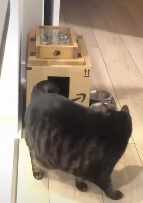 由貓貓出紙箱時猶豫的動作來看,都能猜測到貓貓體型應該不算小,然而出乎眾人意料的是,貓貓最後成功走出紙箱時,其體積竟然和紙箱本身寬度相差無幾,只見牠出來時,身體猶如吹起的氣球般越來越大,令人目瞪口呆。