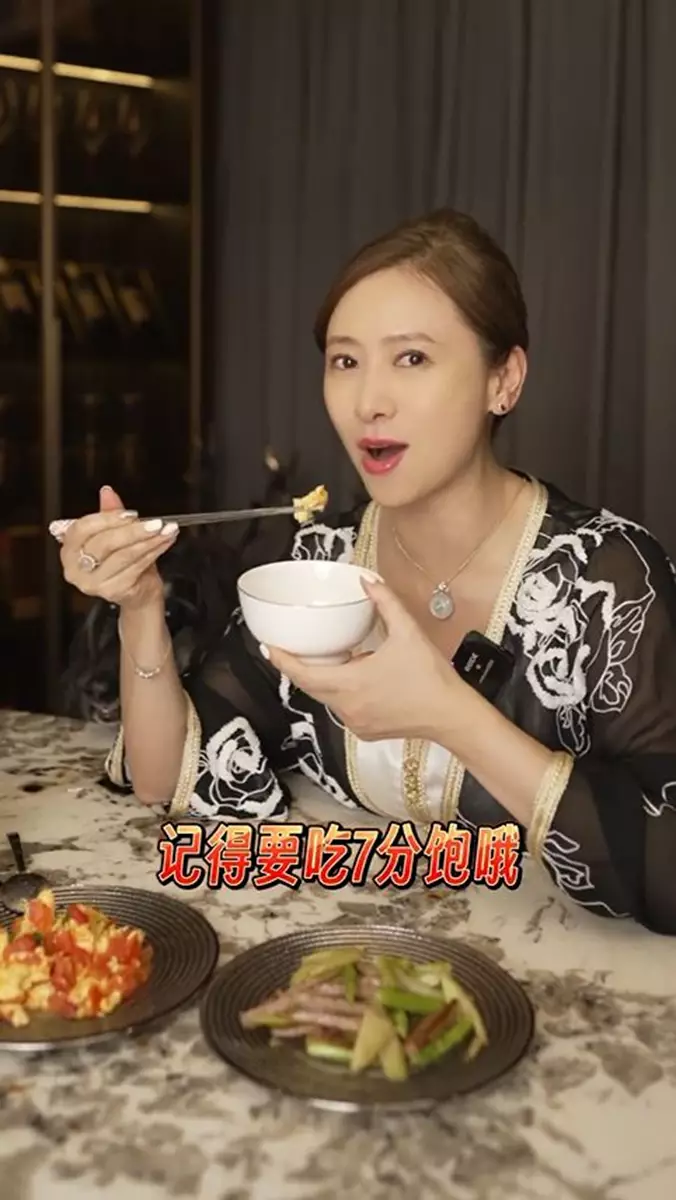 吃完飯,翁虹就會在家打理家務並稍作運動,「微微出汗身體會非常輕盈通暢」。然後,翁虹又分享在書中看到對頭髮有幫助的五谷黑豆漿,雖然未知效果,但她會先喝一段時間,如果有效果便會和大家分享。