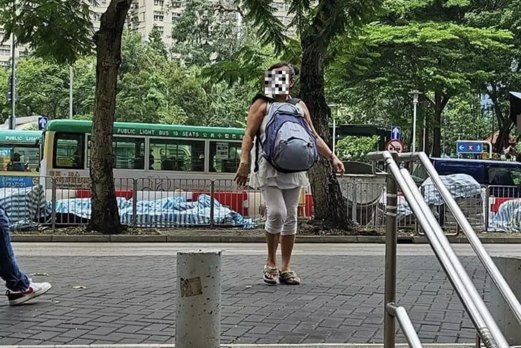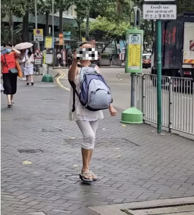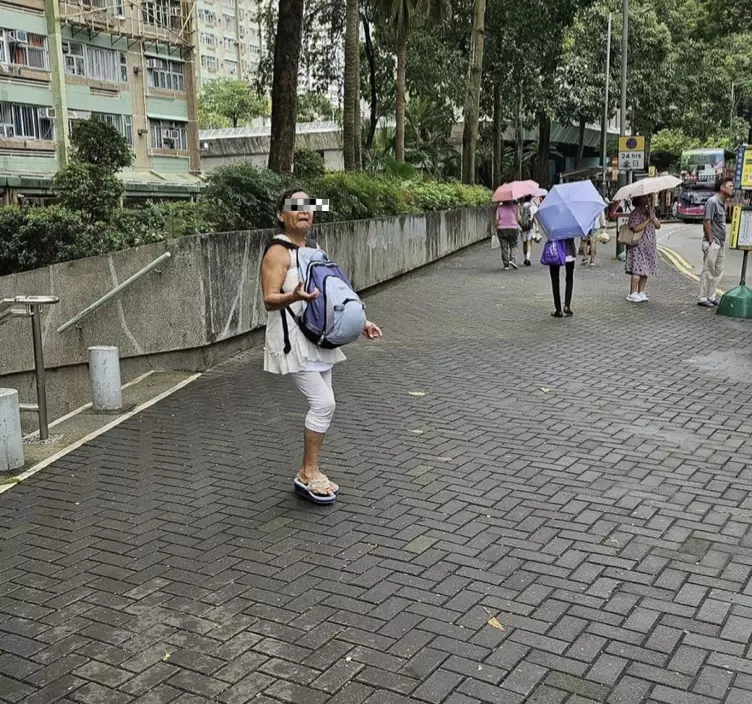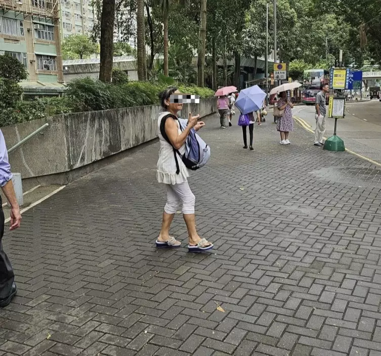 有女街坊於柴灣街頭,目睹一名中年大媽周圍問途人攞錢。(FB圖片)