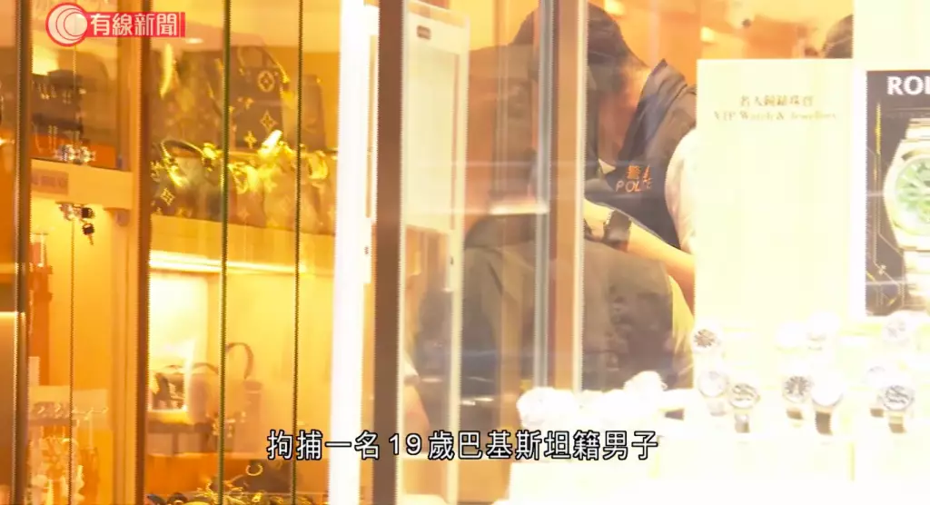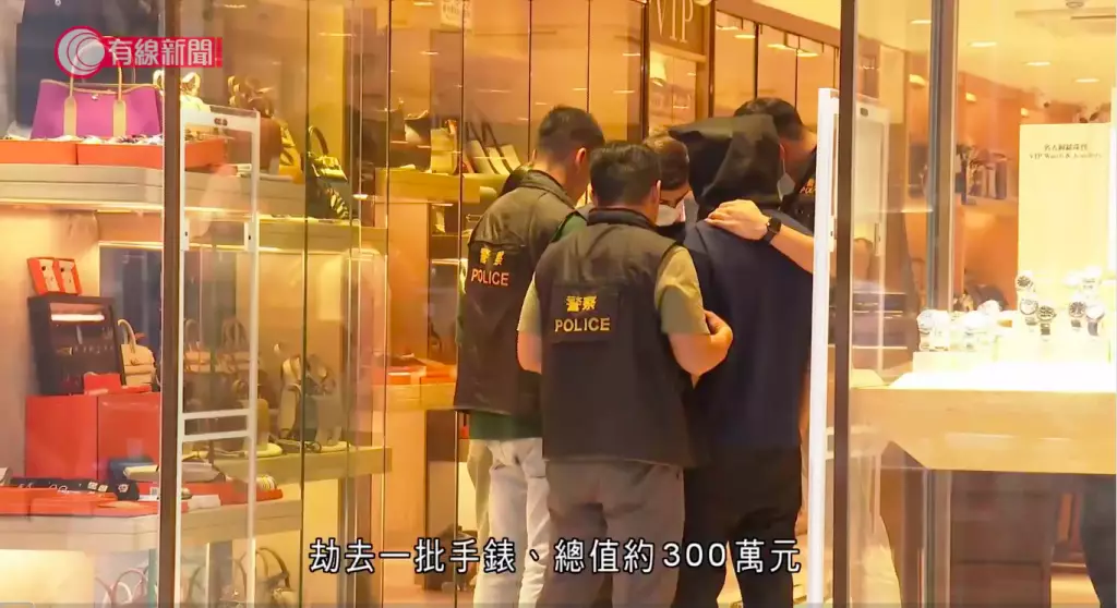 案發在前日下午近4時,3名非華裔男子持刀和大鎚,在約半分鐘內,劫走一批名貴手錶,價值約370萬元。警方事後在將軍澳拘捕一名懷疑涉案的19歲非華裔男子,並在秀茂坪區拘捕一名17歲非華裔男子,涉嫌「誤導警務人員」。