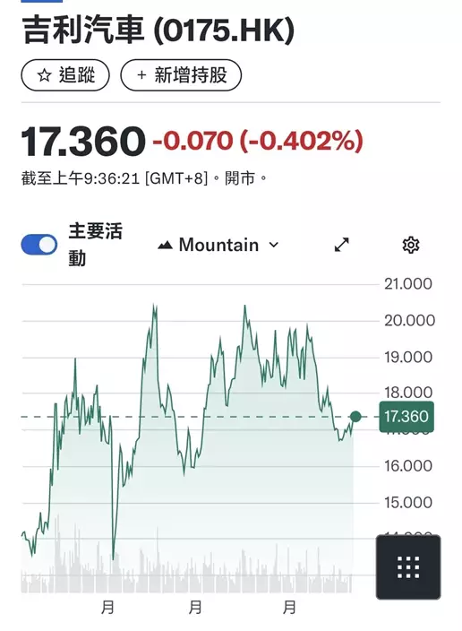 吉利年初至今股價圖。