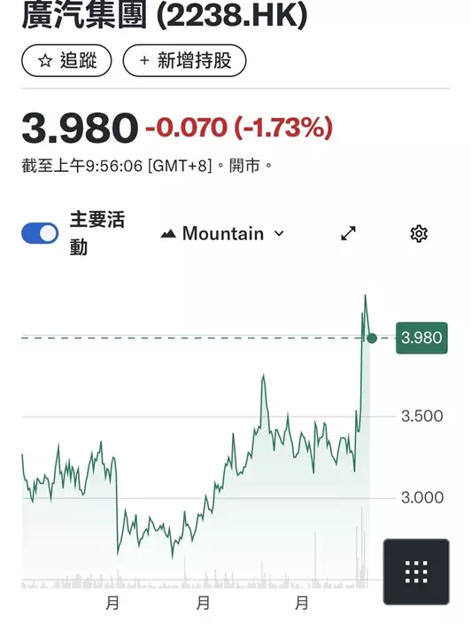 廣汽年初至今股價圖。
