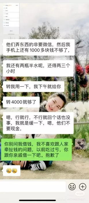 然而,在第二次見面時,這位鄰居竟突然開口向她借錢,而且一借就是要4000元(人民幣,下同,約4284元港幣),這讓她極為震驚,「我本身是很不喜歡跟人家有經濟來往的,感覺這個社會最傷感情的其實就是錢,所以第一次我委婉的拒絕她了。」