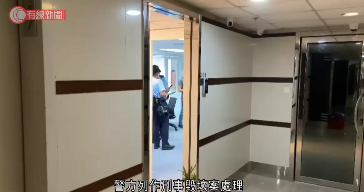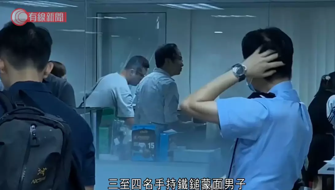 中環一間證券公司被數名男子手持鐵通入內毀壞設施,事後離開,警方正追緝涉案人士。