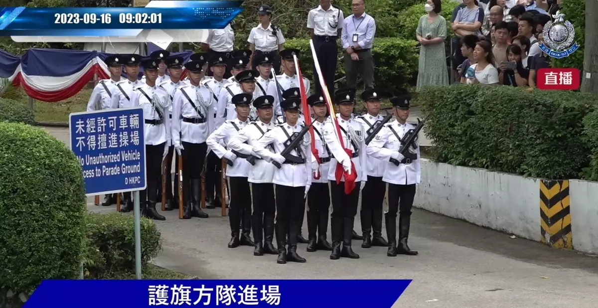 香港警察學院舉行結業會操,中聯辦主任鄭雁雄擔任檢閱官。(香港警察FB短片截圖)