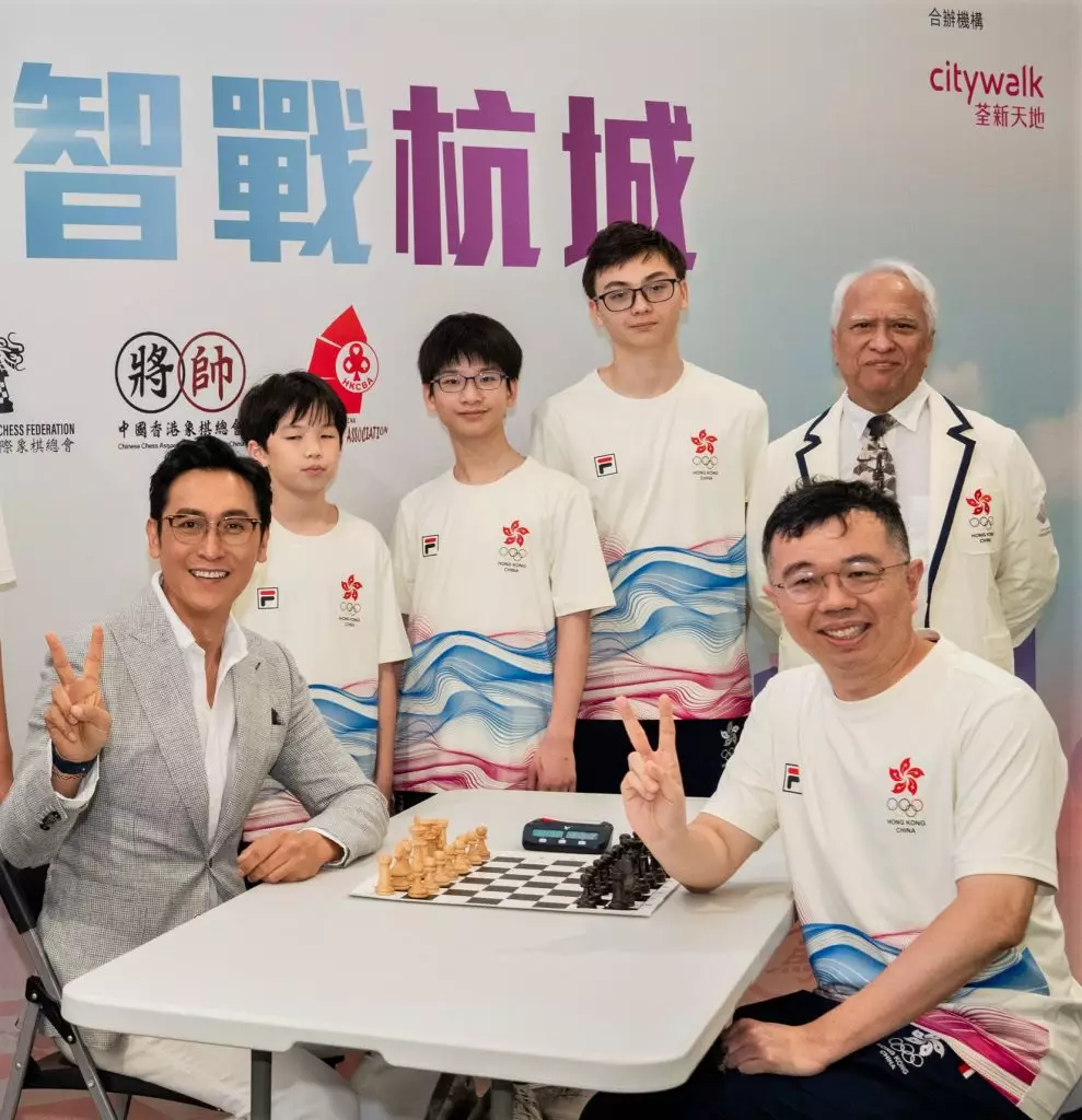鍾情棋藝的藝人馬德鐘(中)擔任智力運動大使撐港隊
