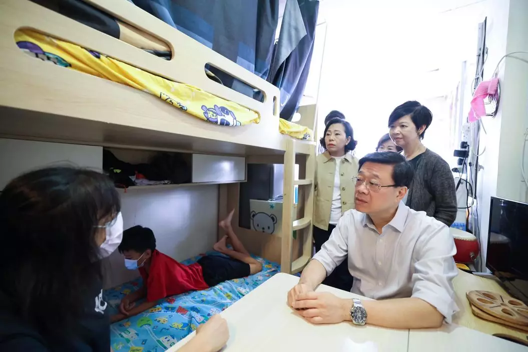 李家超探訪元朗劏房戶 稱「簡約公屋」增上樓機會助新一代向上流