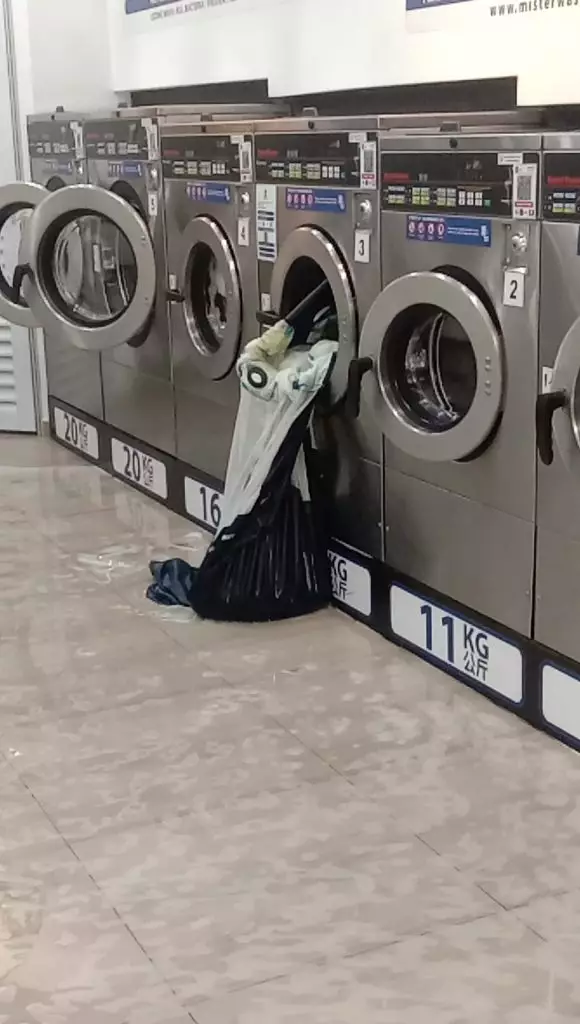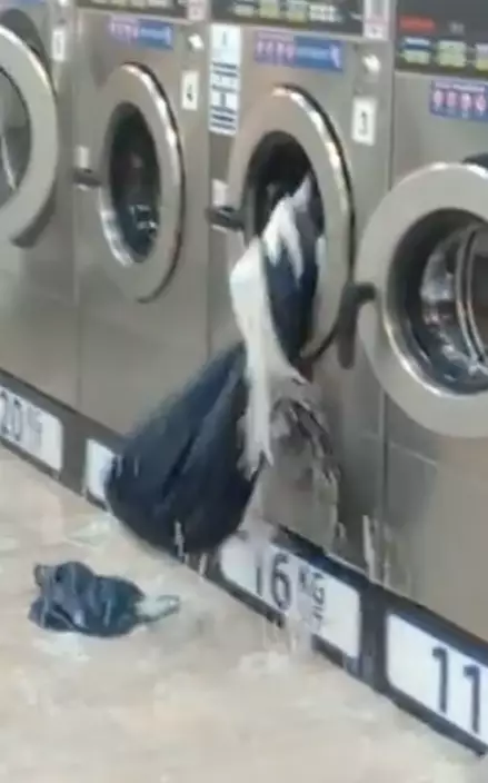 愚蠢用家竟將「呢樣嘢」塞進洗衣店內洗衣機清洗,導致洗衣機玻璃破碎,泡沫狂噴,令見者瞠目結舌。