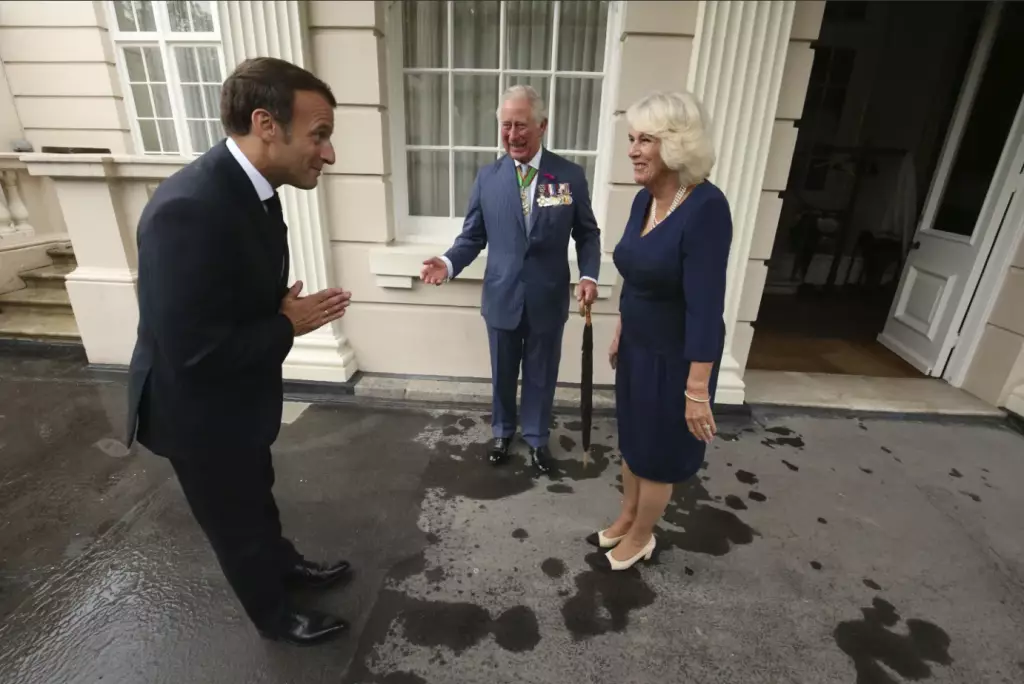 馬克龍和查理斯三世與王后卡米拉。AP圖片