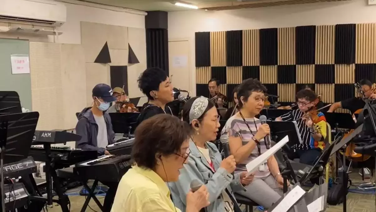 相約為「情牽煇黃經典演唱會」排練 汪明荃與華娃陳潔靈及張德蘭合唱《獅子山下》