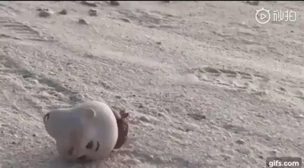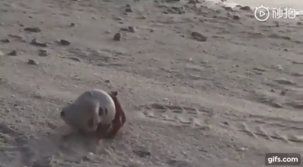 影片曝光後,網友感到非常傻眼,紛紛留言表示,若在沙灘上突然看到這樣的景象,定會嚇得兩腿發軟,「跟鬼片一樣」、「求你選個正常一點的東西寄居啊」。