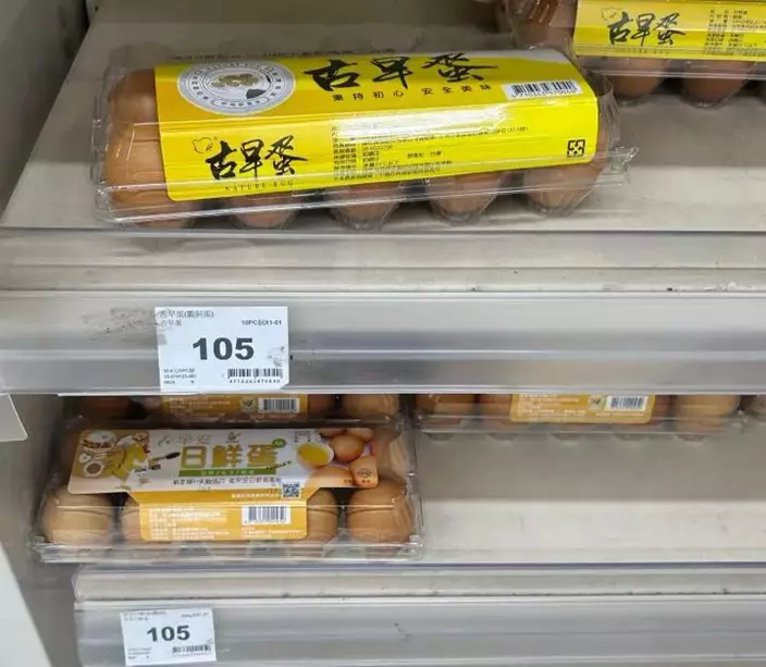 台北一家超市內,一盒10顆雞蛋售價105元新台幣。新華社圖片