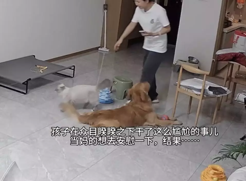內地一名飼主「一根兒藤上的葫蘆」常在抖音上分享家中2隻毛孩的可愛日常,毛孩分別是一隻名為「葫蘆」的黃金獵犬和名為「大福」的海豹色布偶貓,日前飼主分享了愛貓「大福」的尷尬瞬間,畫面逗笑不少網友。