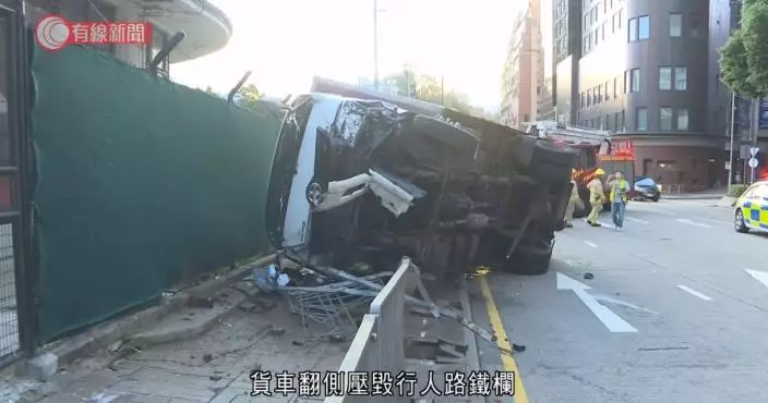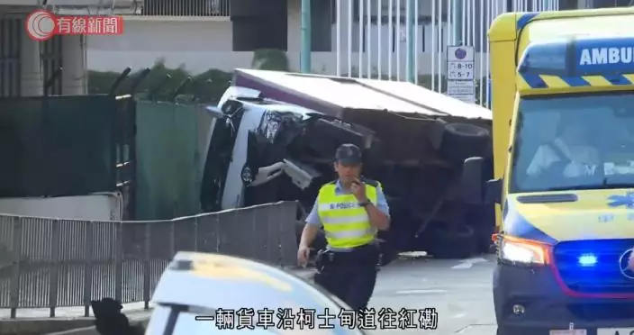 貨車翻側壓毀行人路鐵欄,私家車車頭損毀。早上(9月20日)6時許,一輛貨車沿柯士甸道往紅磡駛至覺士道交界,與私家車相撞。貨車司機被困,由消防協助離開車廂,他和受傷的私家車司機送院,警方封閉一段路面調查意外原因。